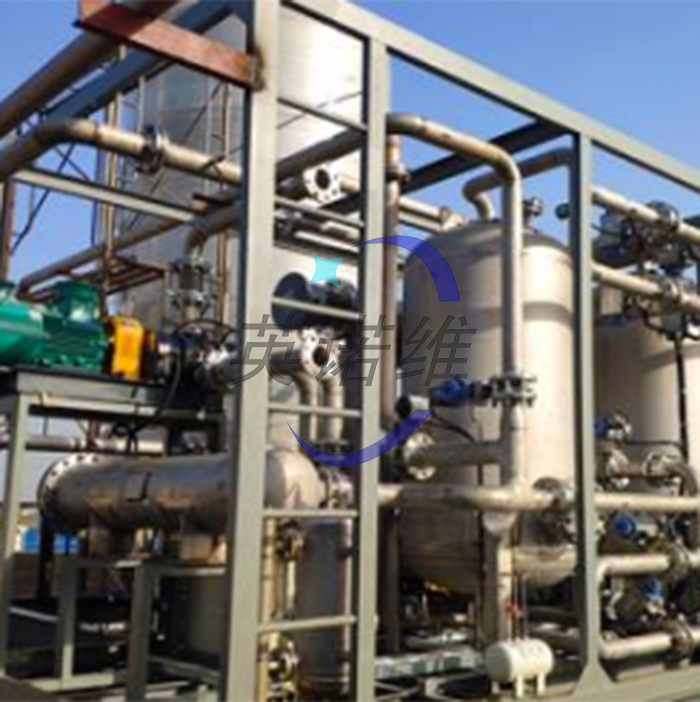 氯丙烯除水回收:低壓含氯丙烯的氣體經過堿洗水洗收送到除水裝置,通過羅茨風機增壓后進入冷卻器降溫同時除去一部分水后進入吸附塔進一步除水,從吸附塔出來的低露點氯丙烯氣體再送到低溫冷卻器,在低溫冷卻器的作用下,氣態的氯丙烯轉變為液態氯丙烯,液態氯丙烯再回到主裝置使用。
